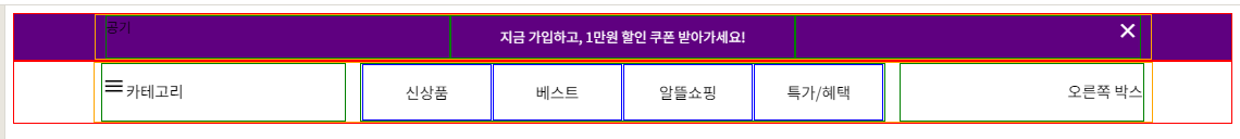 위에 있는 3개의 박스의 넓이가 상위 요소에 딱 맞게 설정되어 있음에도 줄바꿈없이 있는 모습을 확인할 수 있다.
