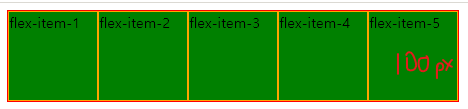 1) flex-item-5의 높이는 100px --> 기본값이 하위요소를 따라가는 flex-container의 높이가 100px로 자동 변경