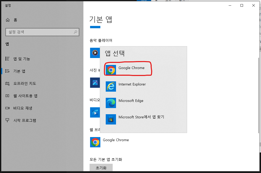 html파일을 효과적으로 잘 적용하는 크롬을 기본 앱 브라우저로 설정한다.