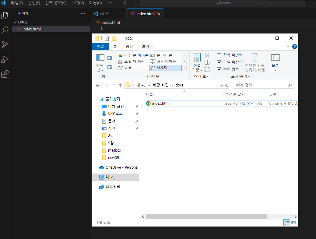 vs code와 폴더가 연동이 잘 되어있는 모습