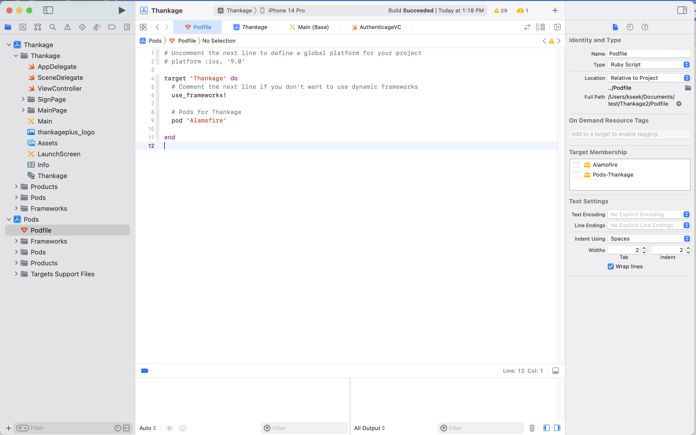 이 파일을 열어 podfile에 넣고싶은 프레임워크를 입력한다.