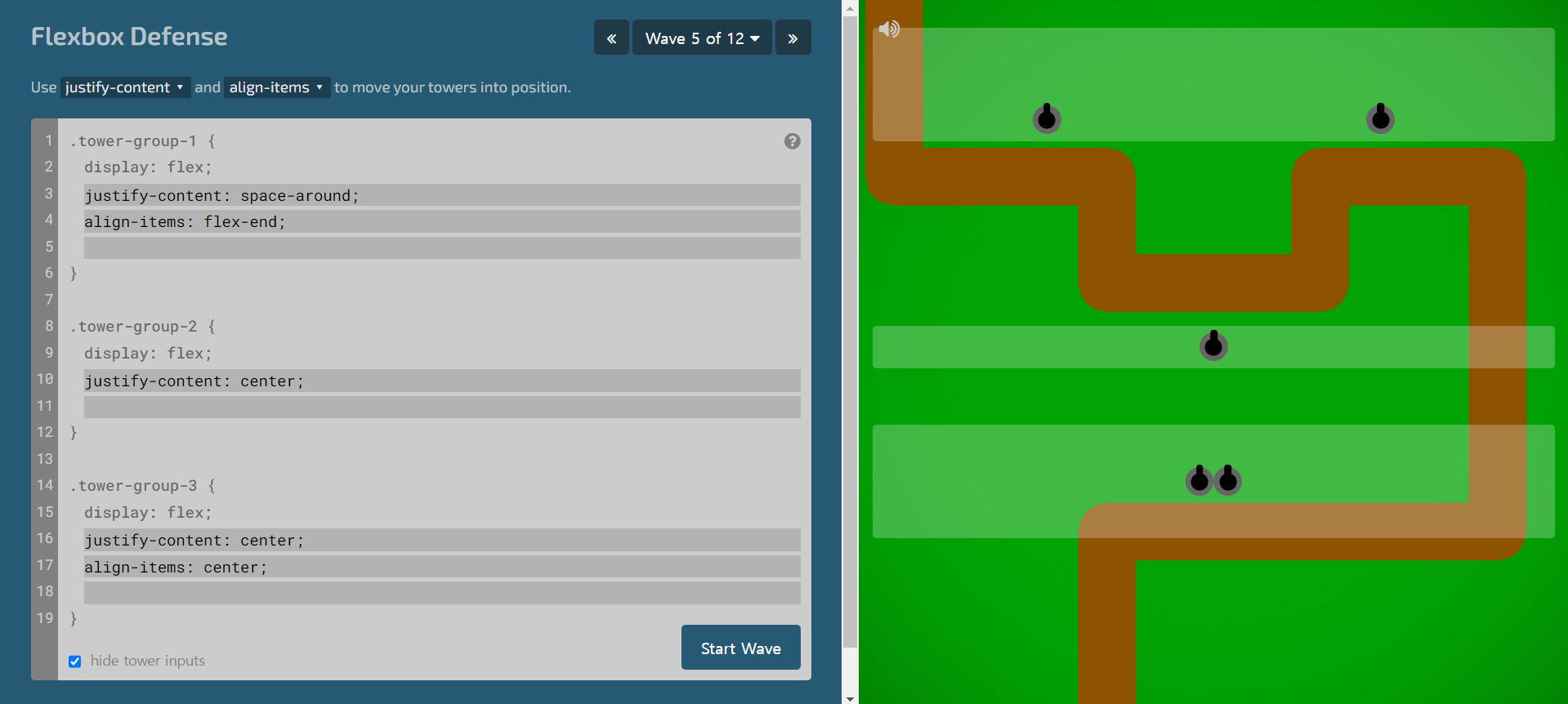 flex 디펜스 링크: http://www.flexboxdefense.com/