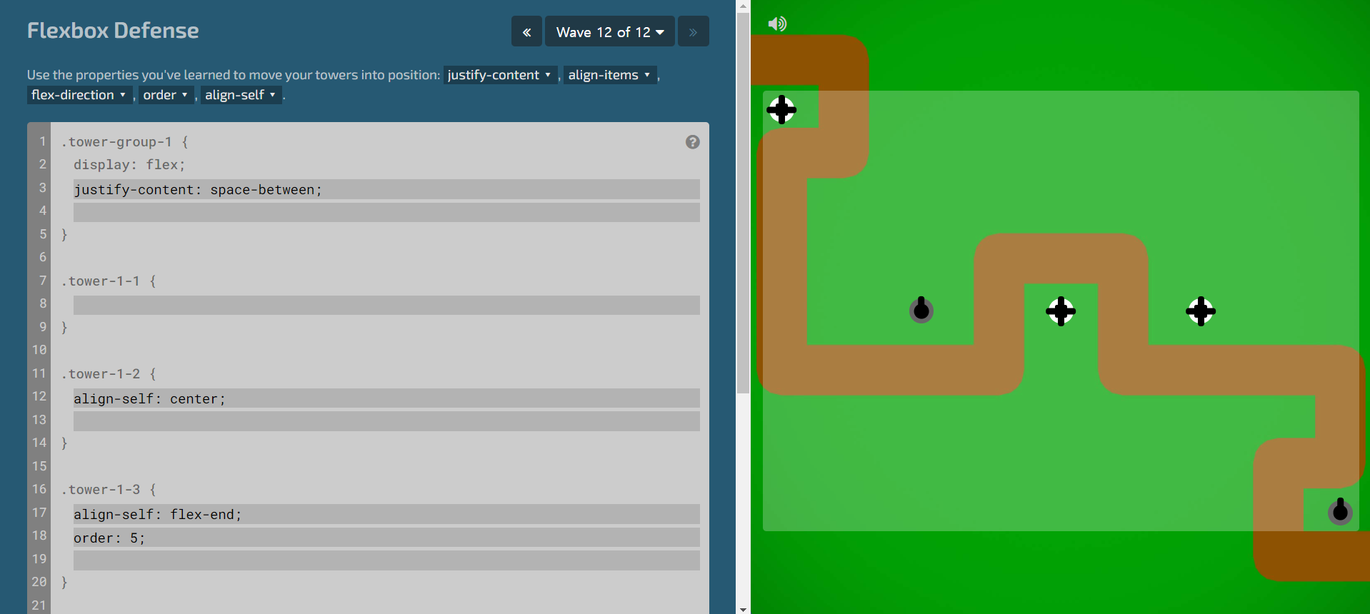 12단계에서 시간이 오래 걸렸던 이유는, tower-group-1에 align-content: space-between;을 적용하려고 했기 때문이다.